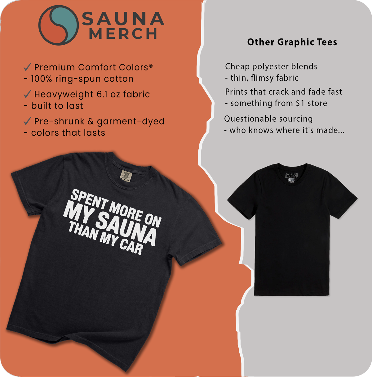 Yes. Every design is created in-house specifically for the sauna community. You won't find these anywhere else—no generic marketplace designs, no mass-produced novelty tees. We've built a brand for people who live the sauna lifestyle, and that means original designs that actually speak to the experience.
