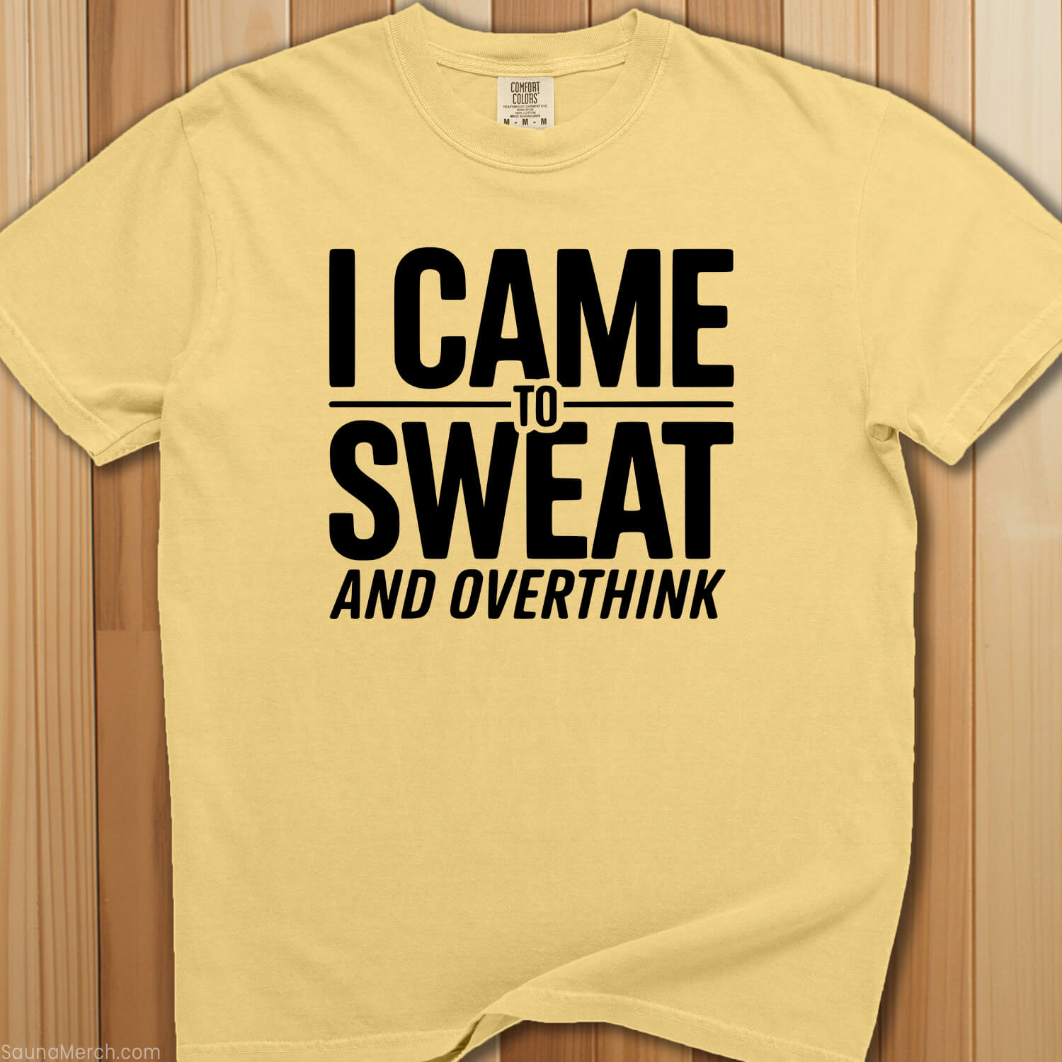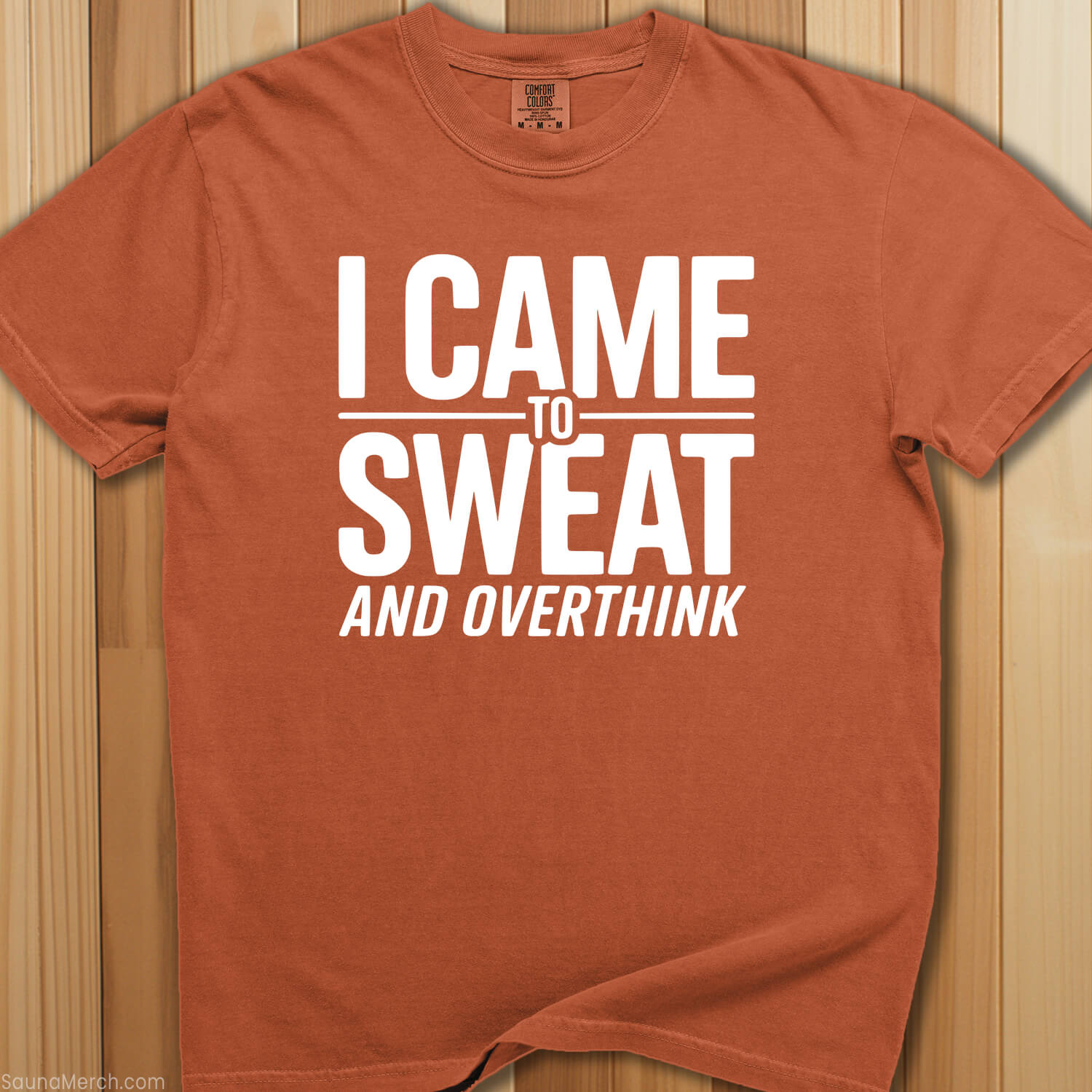 Heat therapy meets mental processing—this premium sauna t-shirt says I Came To Sweat and Overthink for those who know the sauna delivers both physical detox and deep contemplation.