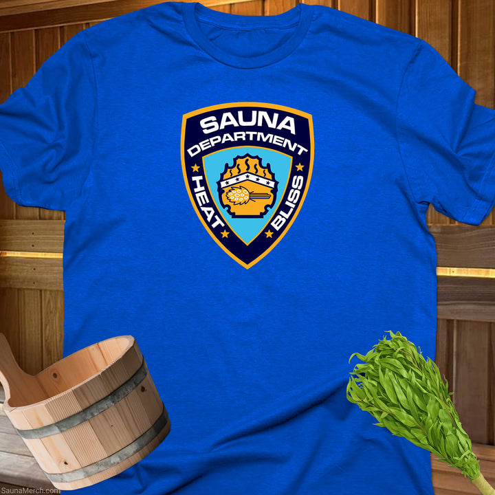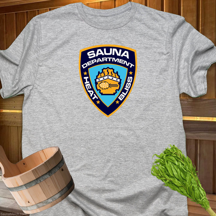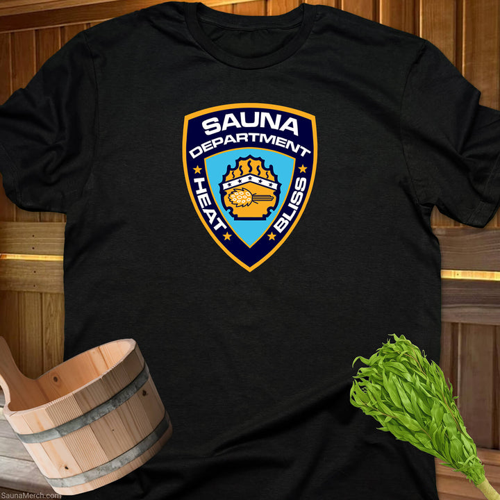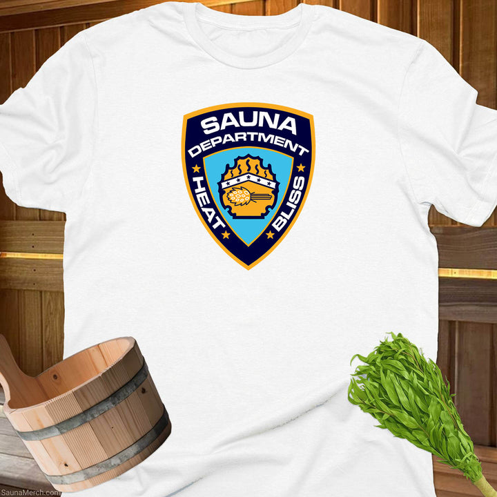 Reporting for steamy duty—this bold Sauna Department tee is your new uniform for every löyly session and laughter break. Perfect as a sauna gift or sauna-themed t-shirt.