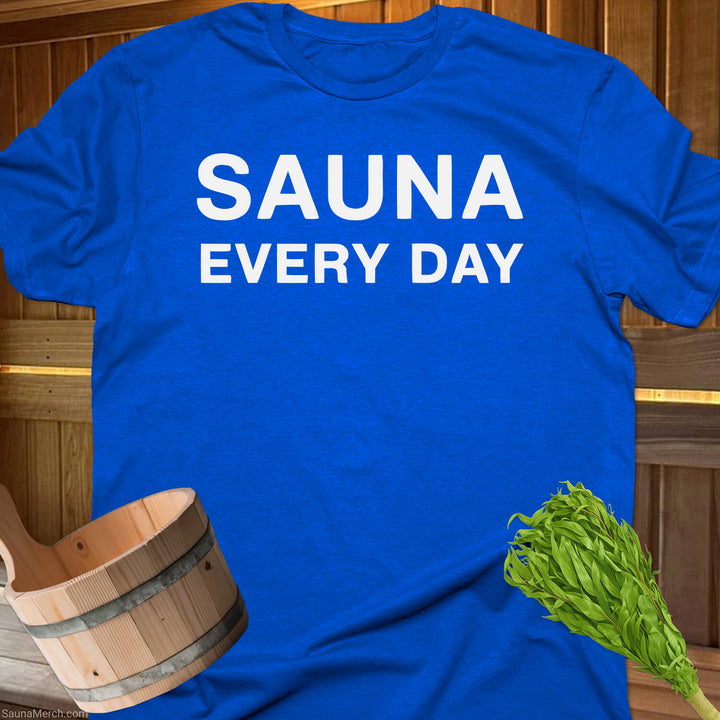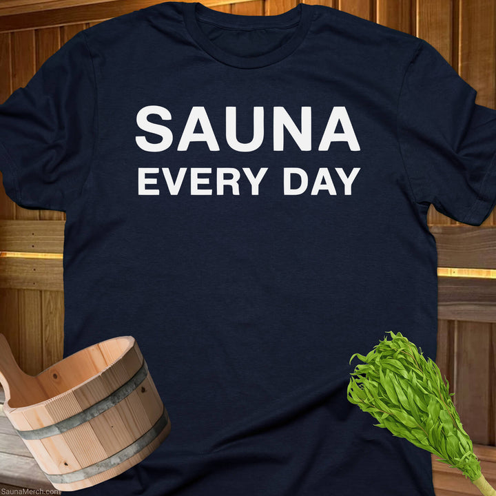 Show off your dedication to daily steam sessions with this sauna-themed t-shirt featuring the bold Sauna Every Day design, perfect for anyone who believes a good löyly cures everything.