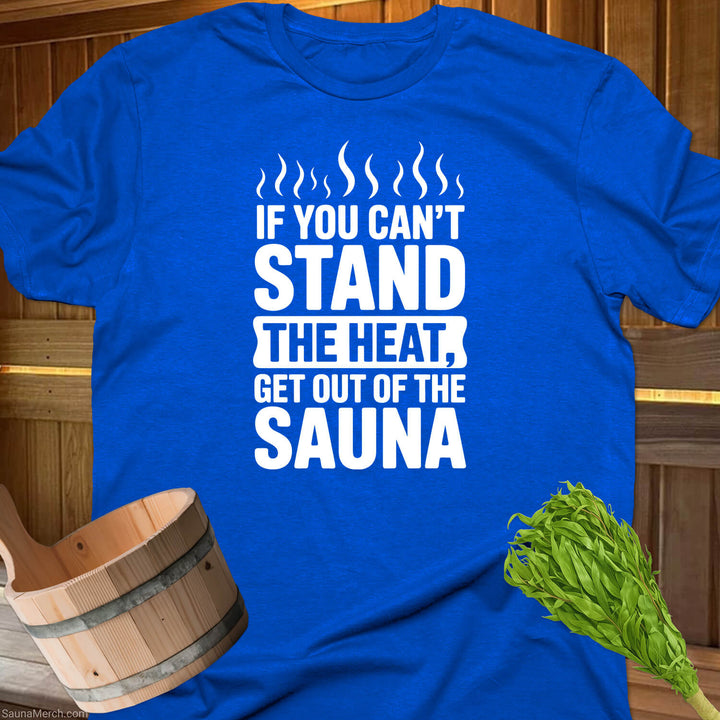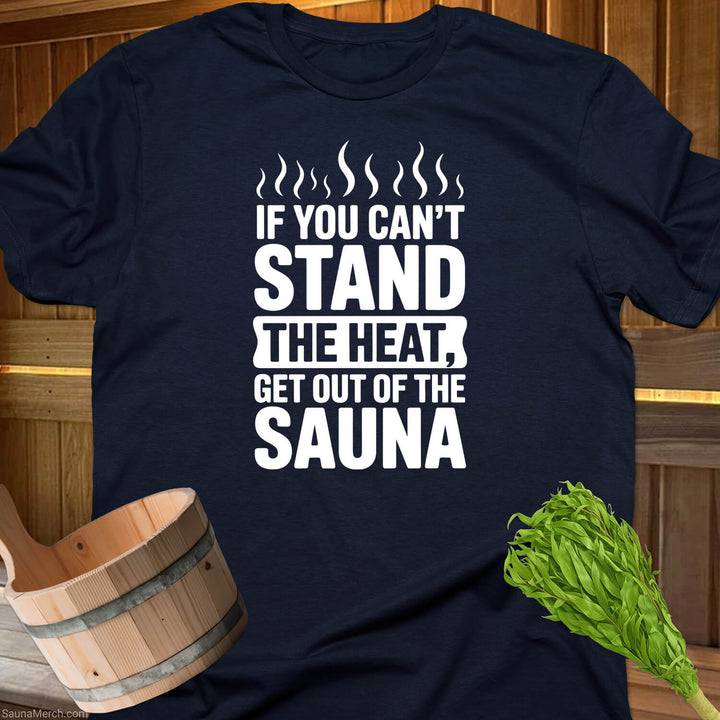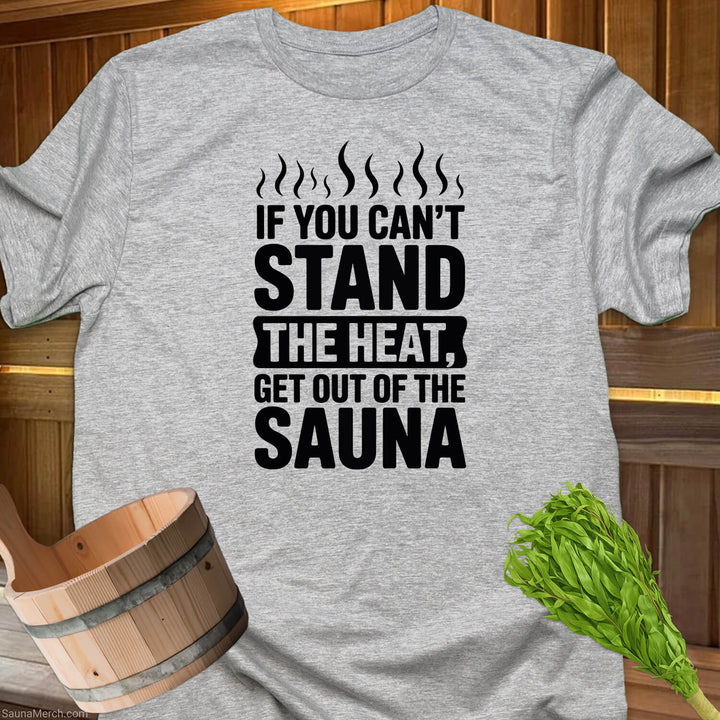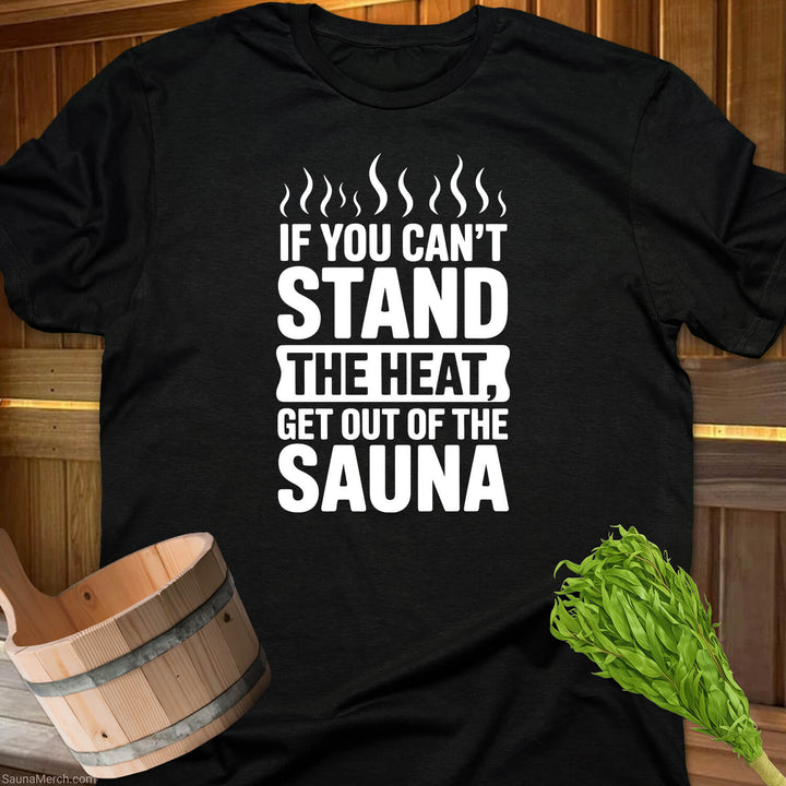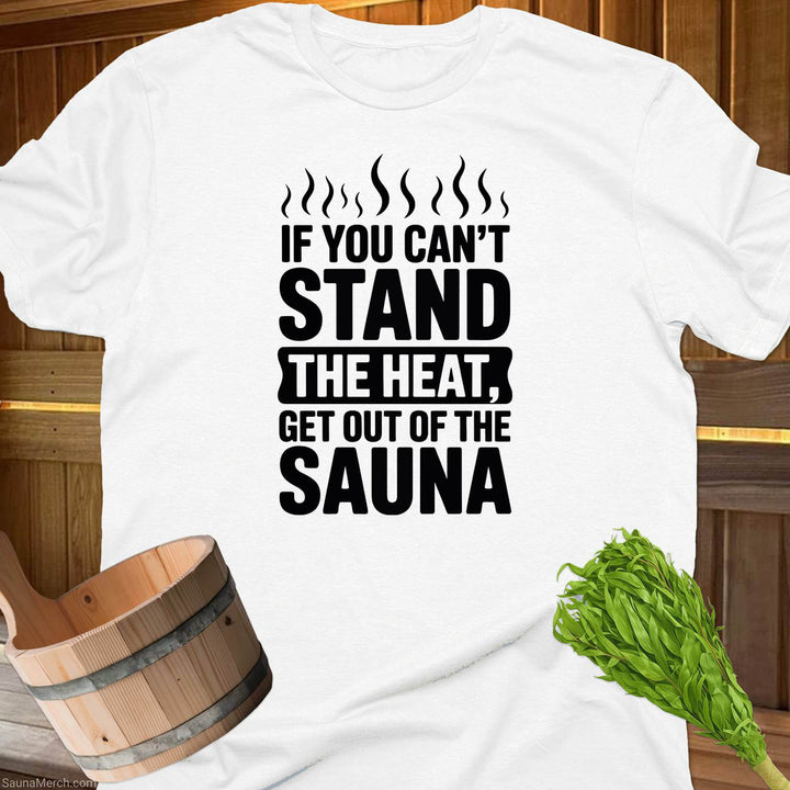 Turn up the steam and your sense of humor with this sauna-themed t-shirt featuring the bold If You Can't Stand The Heat, Get Out Of The Sauna design—perfect for sauna lovers who know the löyly isn’t for the faint of heart.