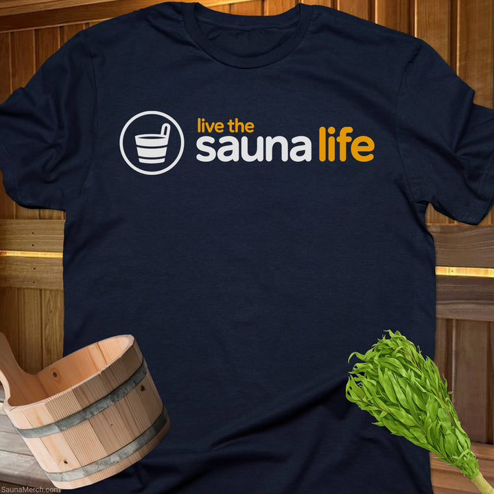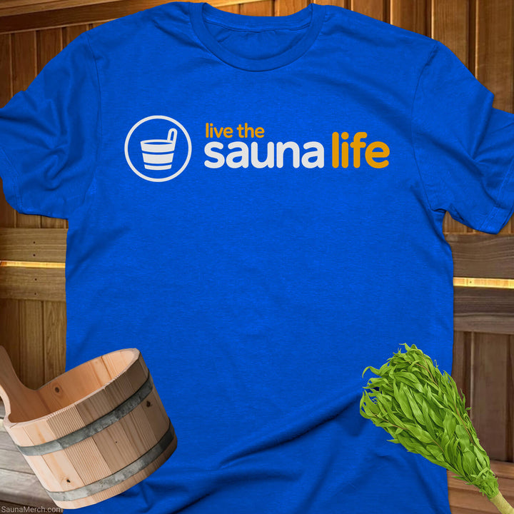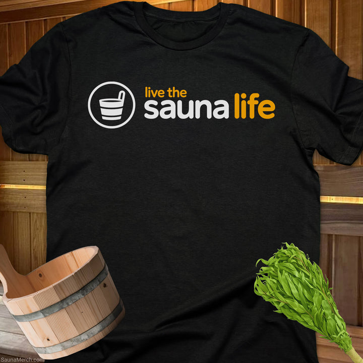 Bring the heat wherever you go with this sauna-themed t-shirt featuring Live The Sauna Life, perfect for anyone who believes their best self emerges somewhere between the steam, löyly, and good vibes.