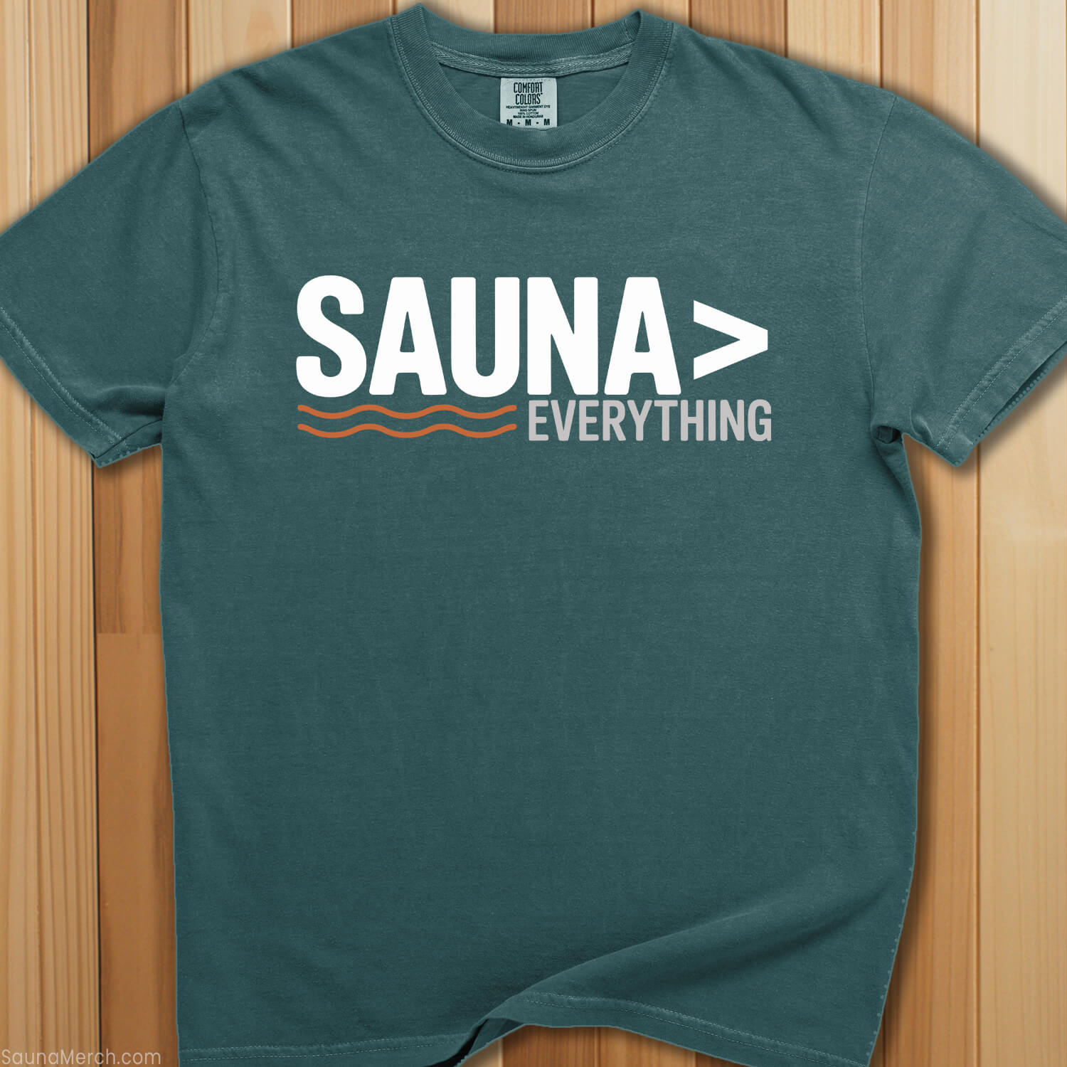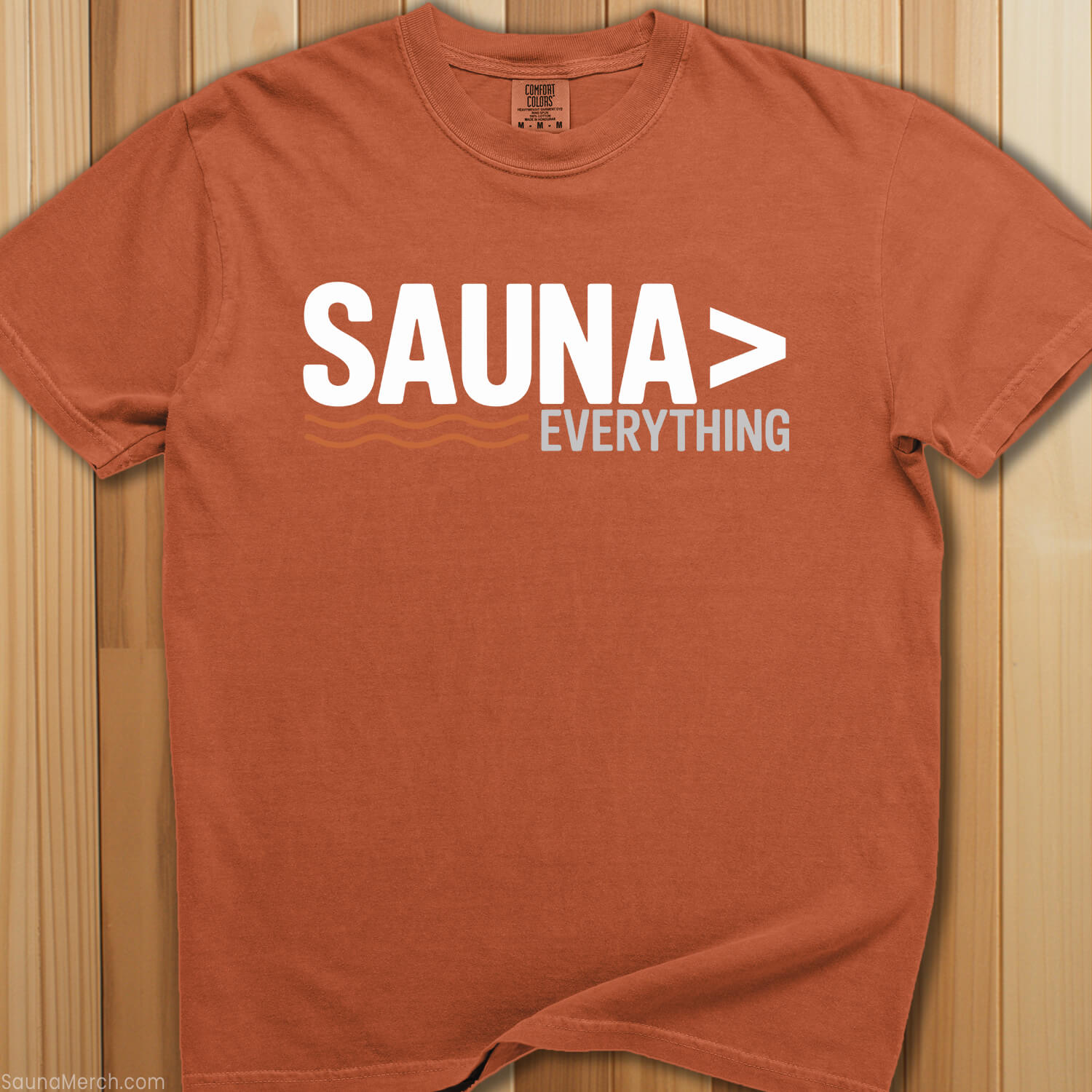 When heat therapy is your highest priority—this premium sauna t-shirt declares Sauna Over Everything for those who've reorganized their entire life around optimal recovery sessions.