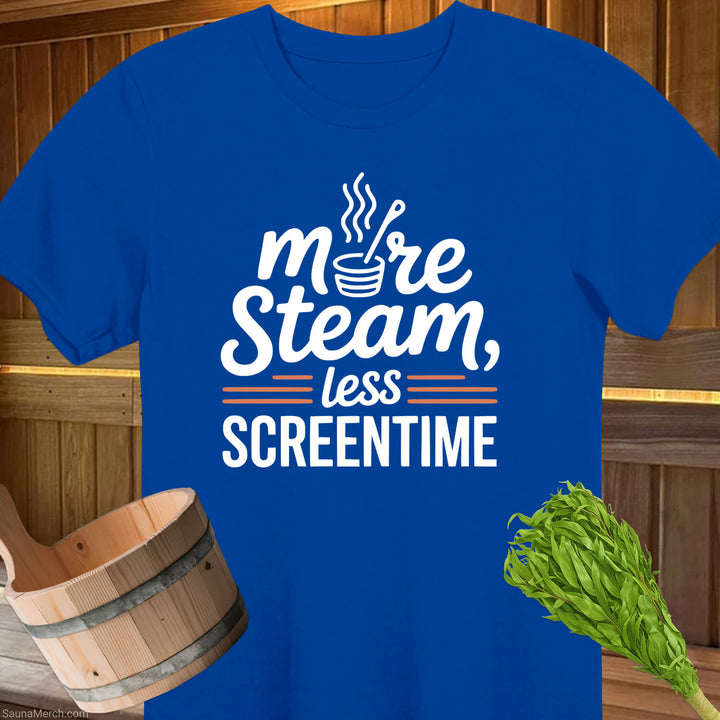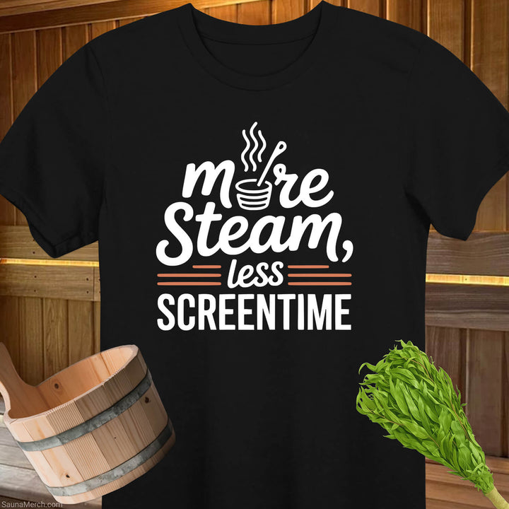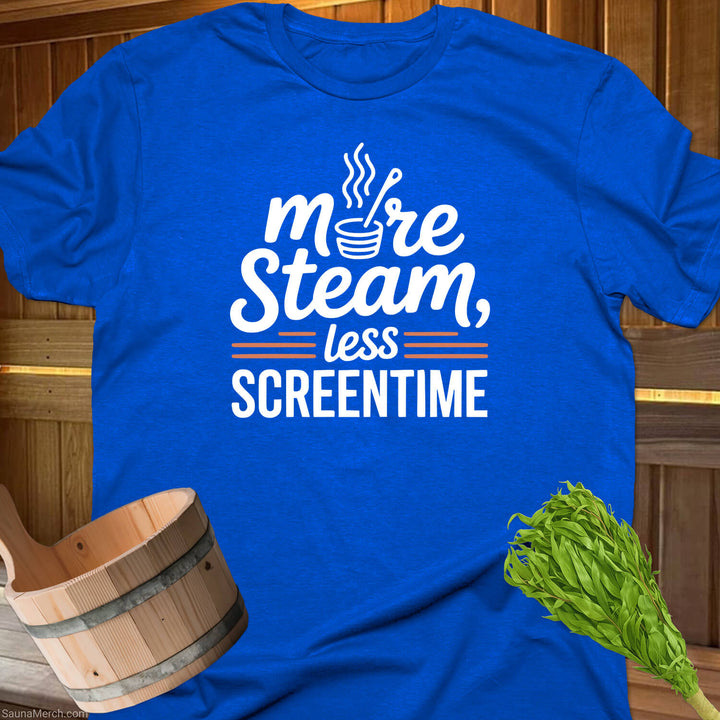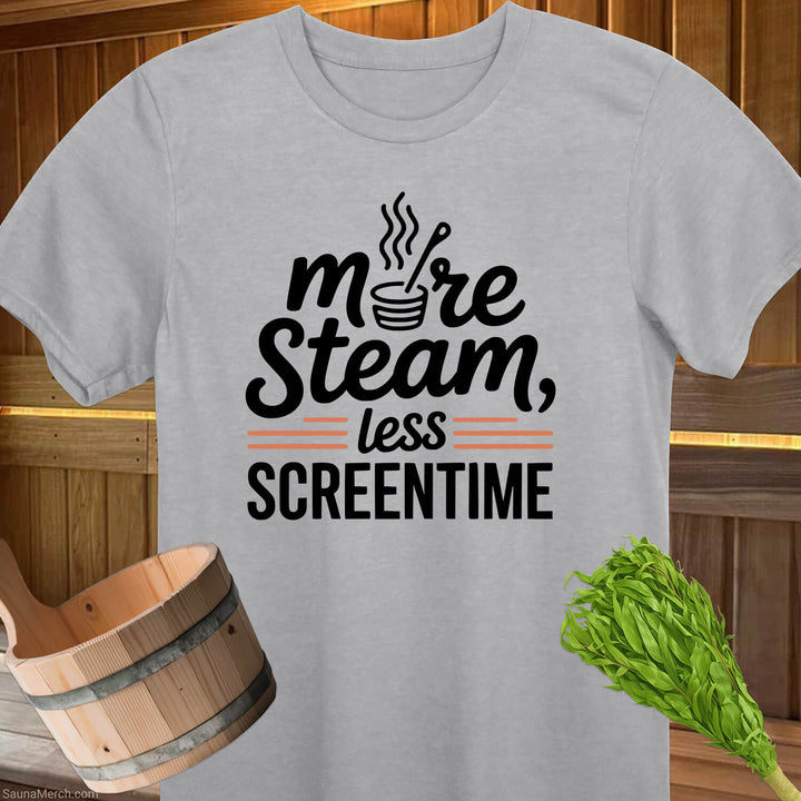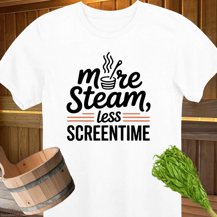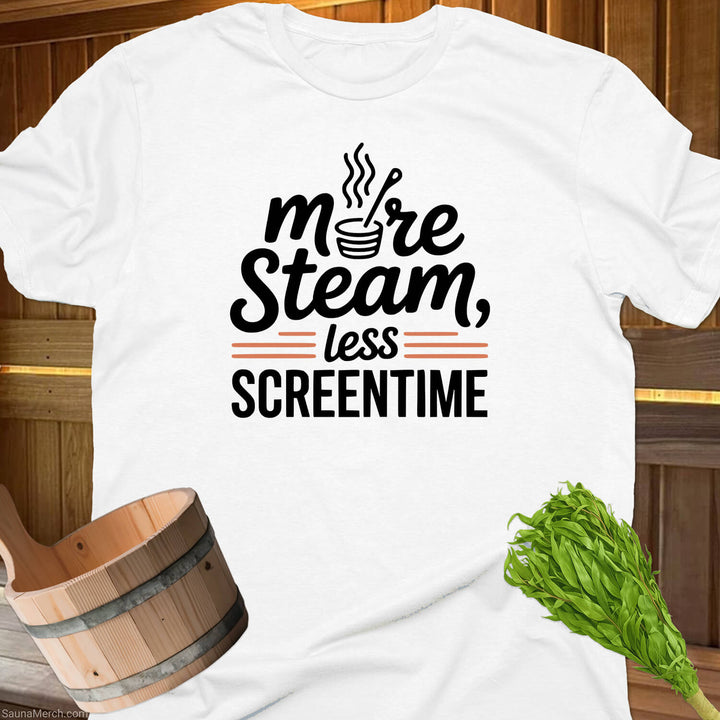 Because sometimes the best notifications come from the hiss of hot rocks. The More Steam, Less Screentime tee is a must-have for anyone who knows saunas are for sweating, not scrolling. The perfect sauna gift or sauna-themed t-shirt for your next digital detox session.
