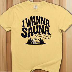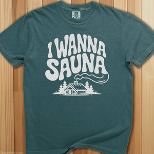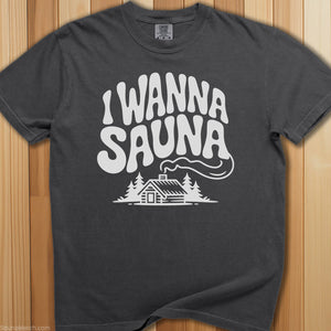 The constant state of mind for heat therapy enthusiasts—this premium sauna t-shirt says I Wanna Sauna because the answer is always yes, regardless of time or circumstance.